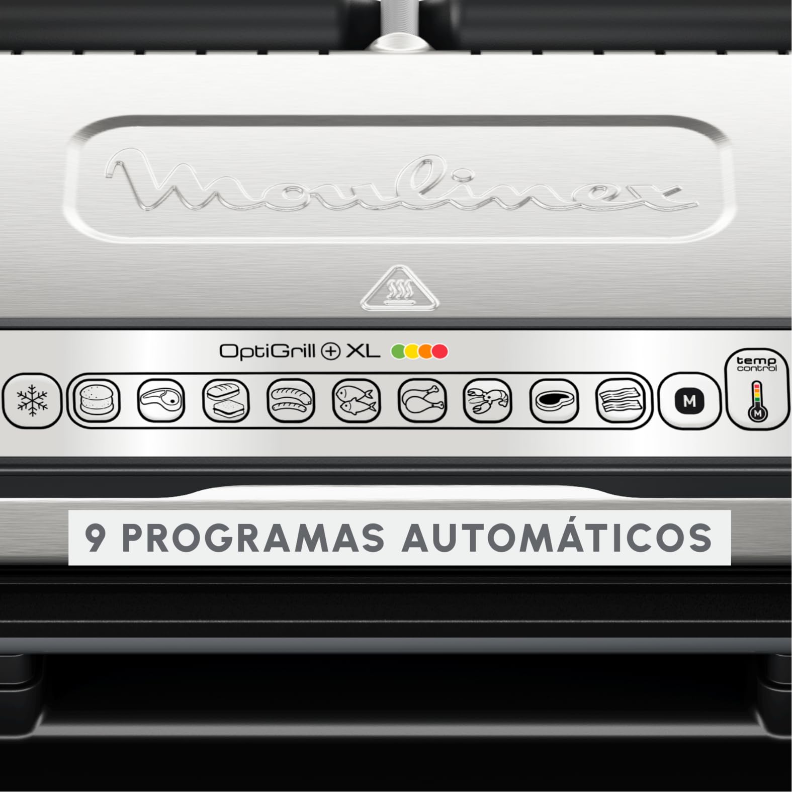 Moulinex Optigrill+ XL GI722D | Parrilla Eléctrica Interior, 9 Programas, Indicador de Cocción, Placas Antiadherentes, Carne, Pescado, Verduras