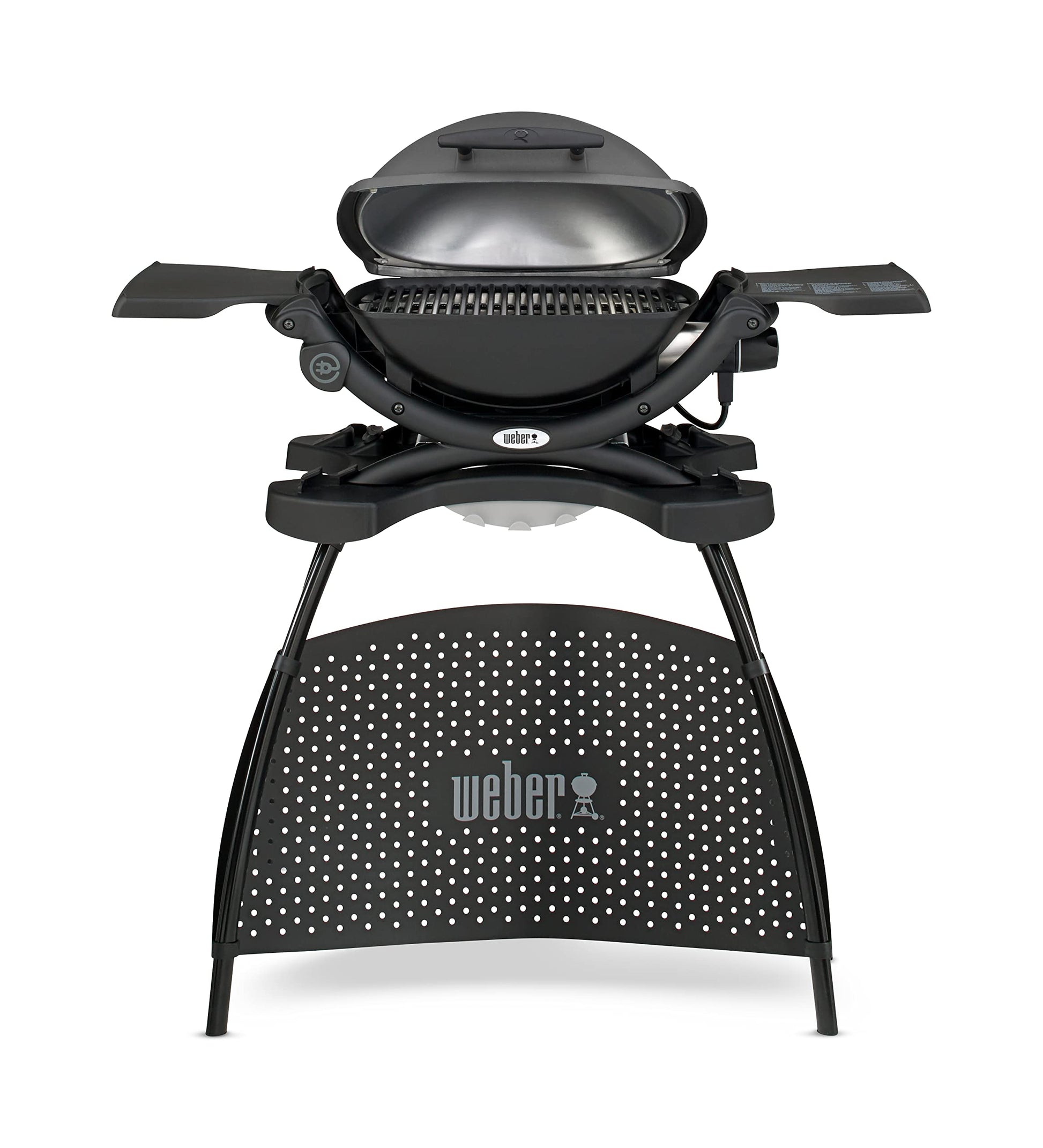 Weber Q1400 Barbacoa eléctrica con soporte, área de cocción de 43 x 32 cm, portátil, parrilla de hierro fundido esmaltado dividida en 2, tapa y cuba de aluminio fundido - Gris Oscuro (52020853)