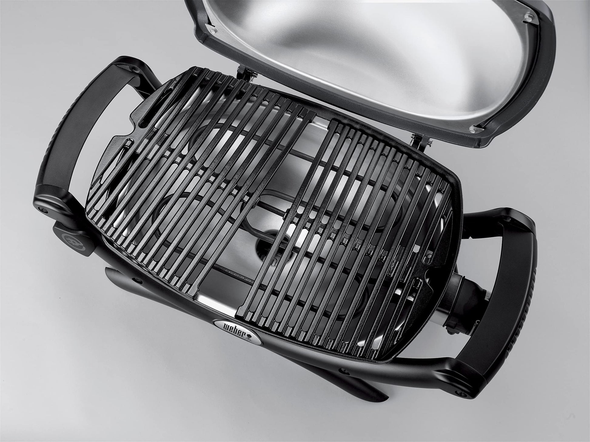 Weber Q1400 | Barbacoa Eléctrica Portátil con Soporte, Área 43x32 cm, Parrilla Hierro Fundido Dividida, Tapa y Cuba Aluminio, Gris Oscuro (52020853)